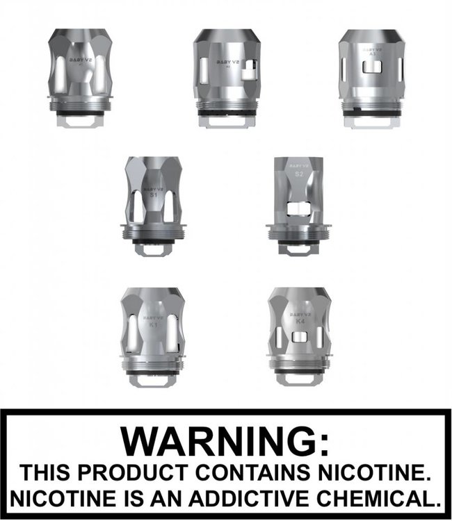 The smok tfv8 baby turbo engines replacement coils are powerful cores introduced with the smok tfv8 baby beast tank furthermore it is compatible with the latest tfv8 big baby tank and the tfv12 baby prince tank the v8 baby m2 is compatible with the smok stick v8 patented in design for high performance capability it offers unparalleled airflow performance and incredible vaping experience.